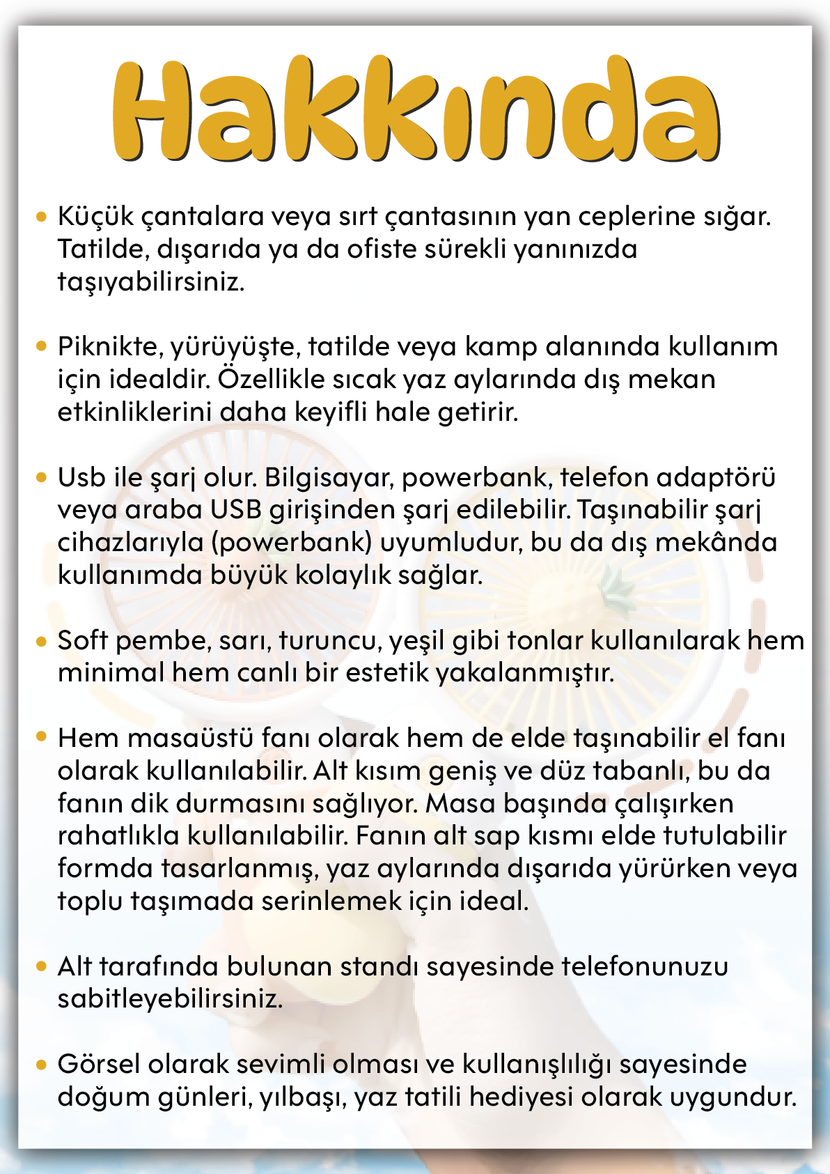 1 Adet MİNİ EL FANI -